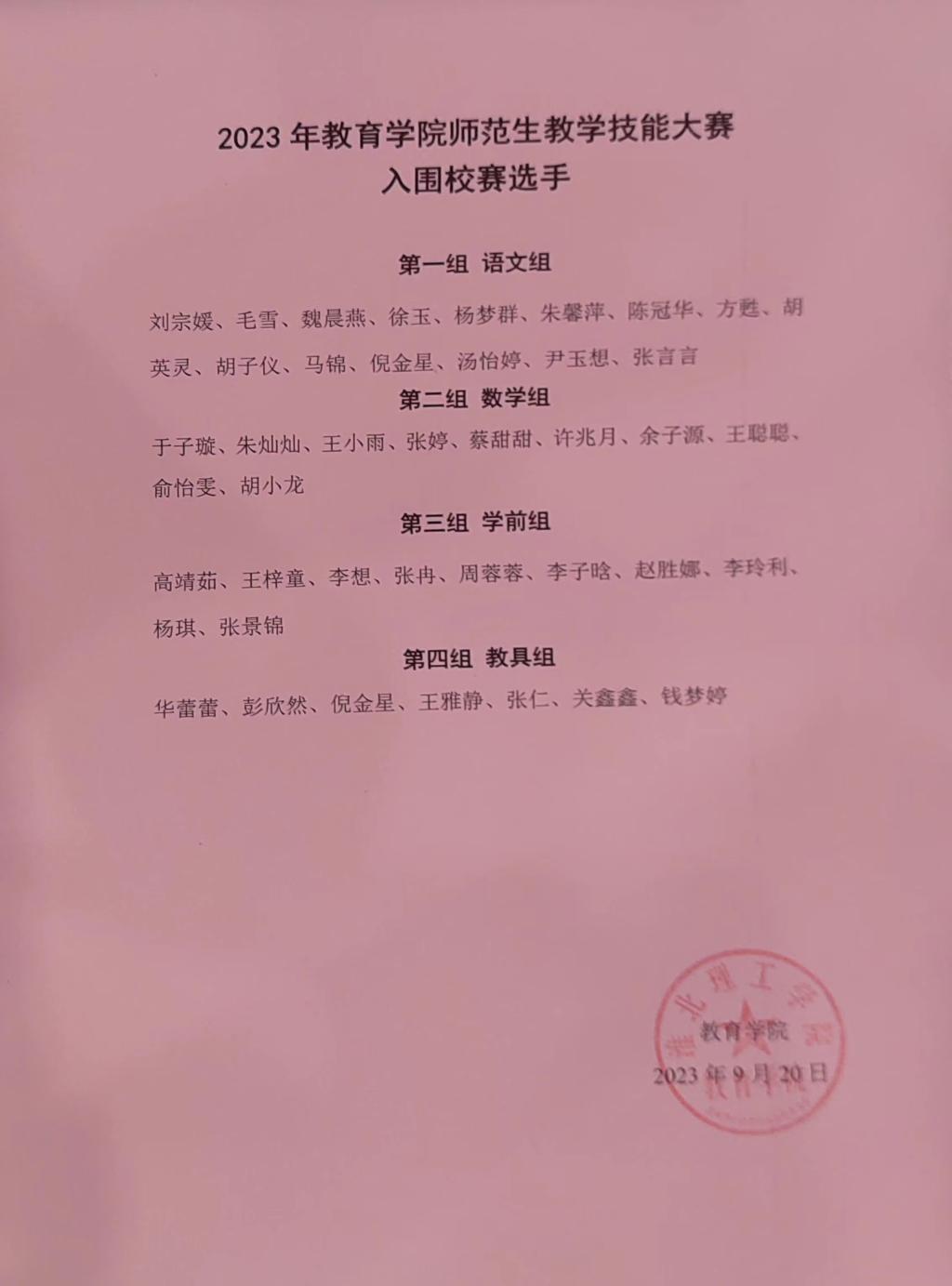2023年kaiyun开云官方师范生教学技能大赛入围校赛名单公示