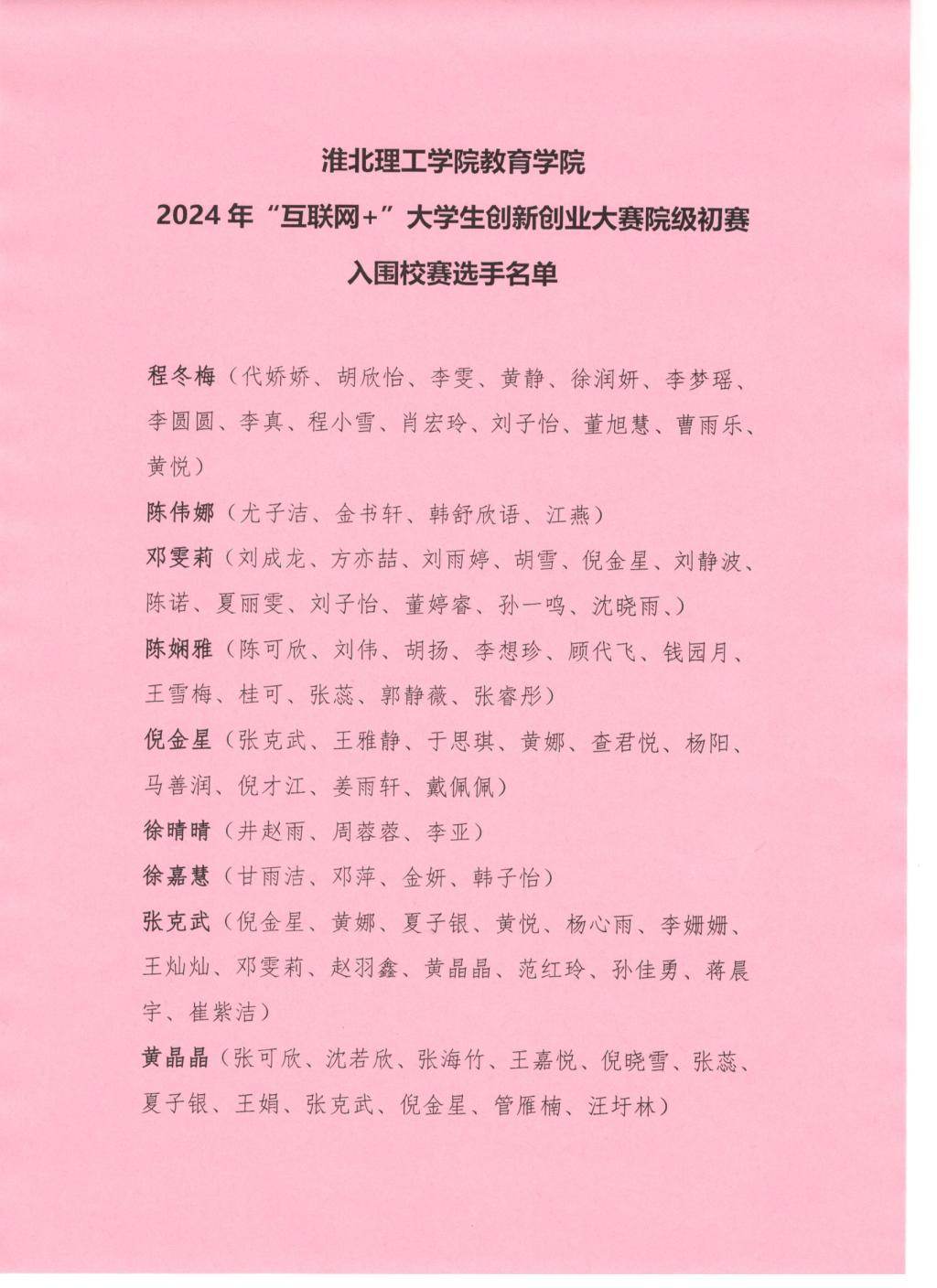 kaiyun开云官方2024年“互联网+”大学生创新创业大赛院级初赛入围校赛选手名单