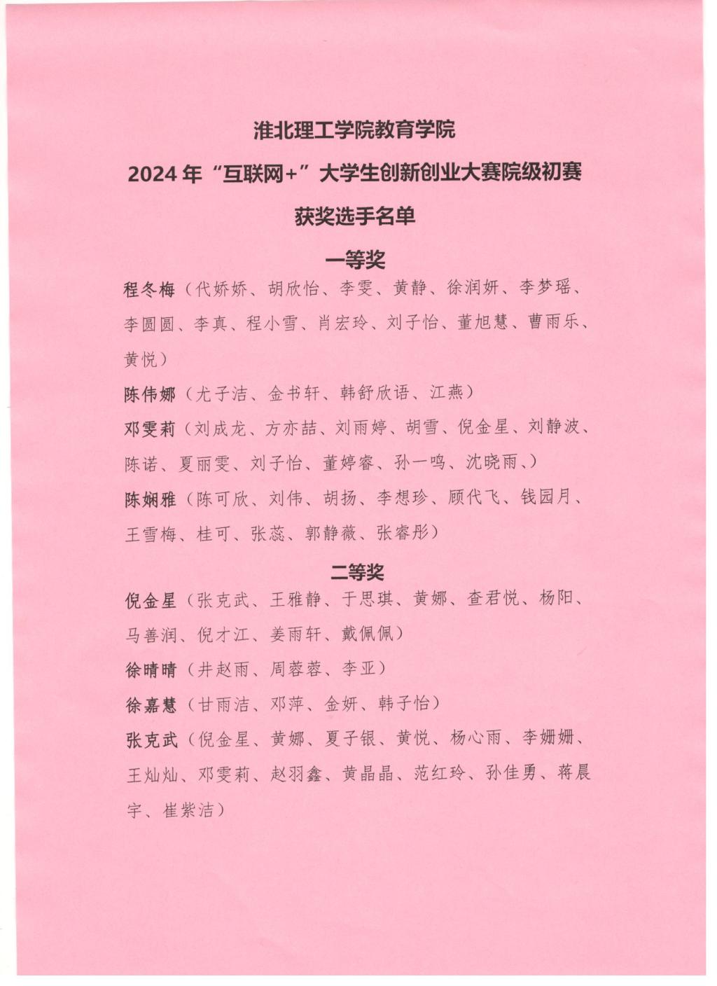 kaiyun开云官方2024年“互联网+”大学生创新创业大赛院级初赛获奖选手名单