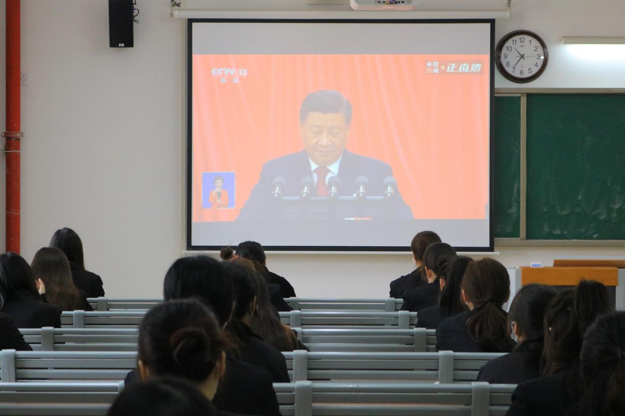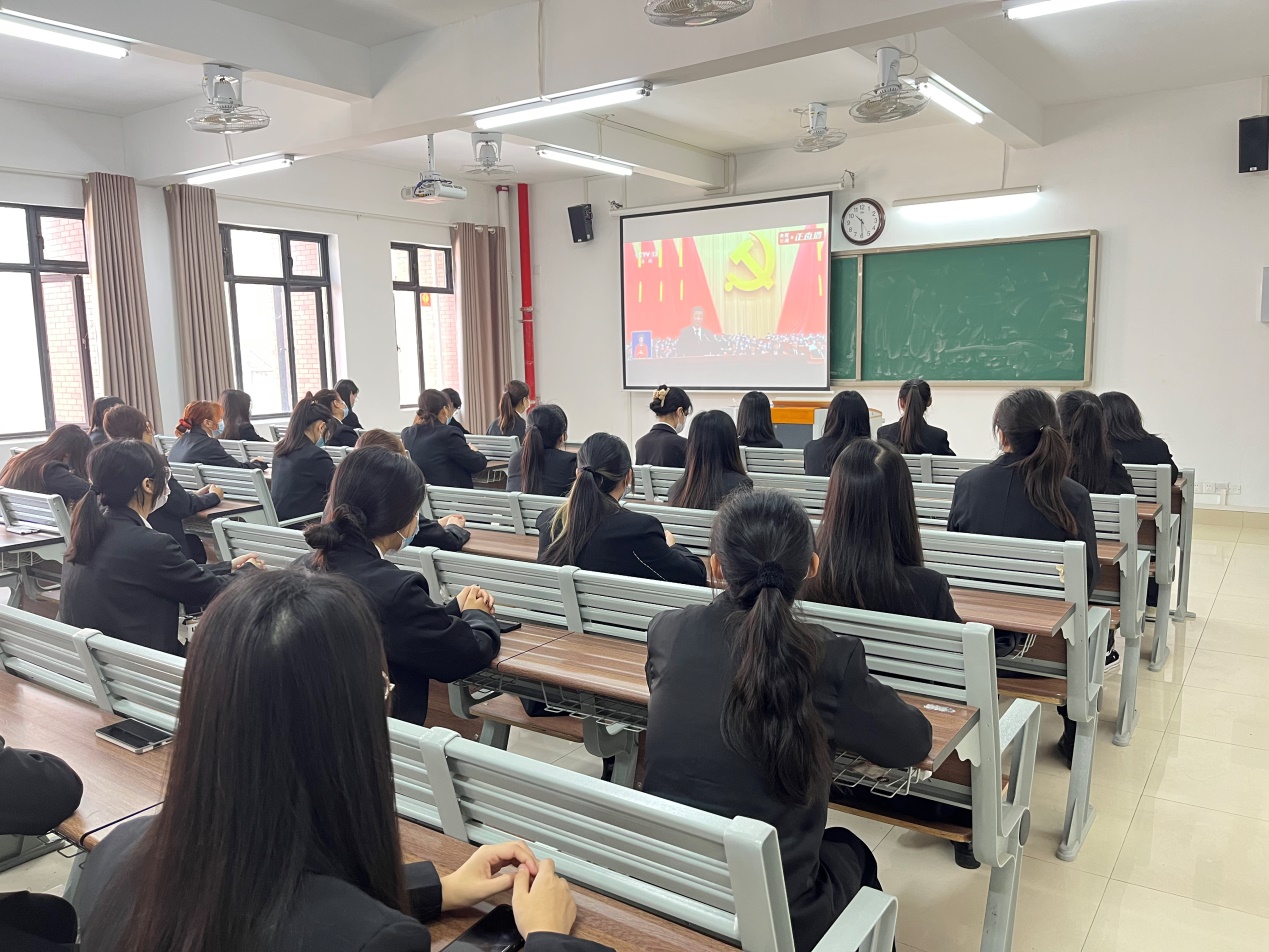 2022年10月16日上午,kaiyun开云官方组织学生党员、学生代表分别在第2教学楼412教室、413教室、414教室、415教室集中观看党的二十大开幕会盛况。