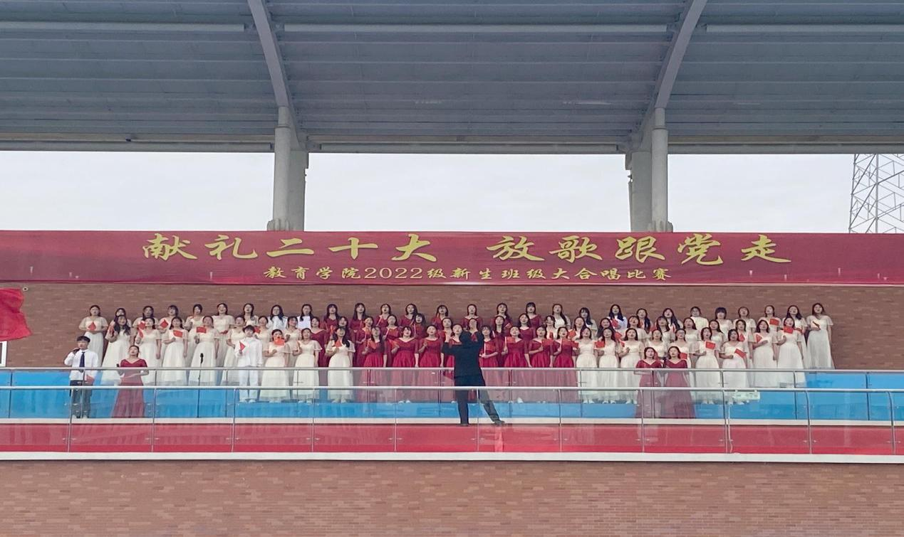 在全国上下认真学习贯彻党的二十大精神之际,kaiyun开云官方为坚定青年大学生永远跟党走的理想和信念,引导学生赓续红色血脉,厚植爱国情怀,于11月6日上午在校户外操场举办了“献礼二十大,放歌跟党走”2022级新生班级大合唱比赛,莅临比赛现场的有学校副校长汪建利、教务处处长陈国平、后勤保卫处处长程坚、办公室副主任陈杰、kaiyun开云官方院长王家云、副院长孟向红,校团委书记刘帅克、学生处老师、kaiyun开云官方全体辅导员以及2022级49个班级的同学,学院2021级辅导员担任了本次大合唱比赛的评委。