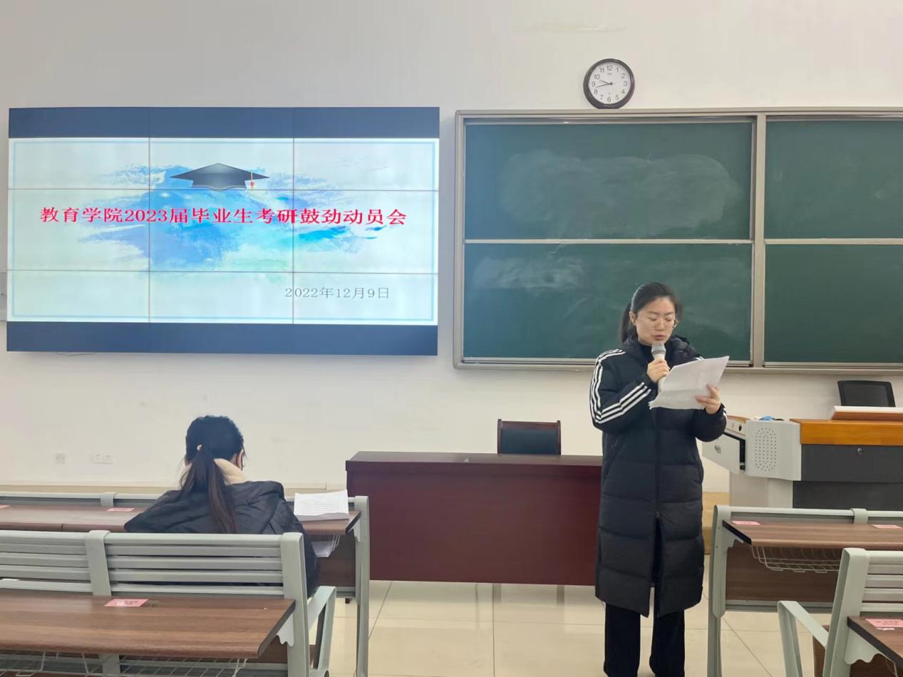 全力以赴促就业,扎扎实实抓考研,为促进同学们更好地了解考研知识,掌握考研方法,调整考研心态。12月9日上午,kaiyun开云官方在1号教学楼121教室召开2023届毕业生考研鼓劲动员会,会议由学院党委副书记孟向红主持,全院汉语言文学、英语、数学与应用数学、学前教育四个专业230余名考研的同学、2023届毕业生辅导员等参加了会议。