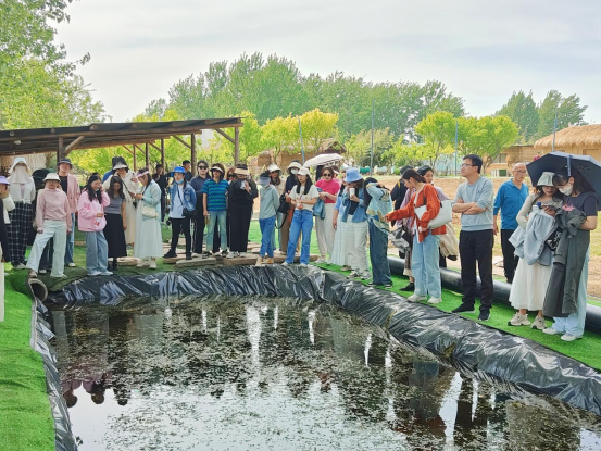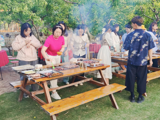 在庄园向导的指引和介绍下,踏青队伍参观游览了整个庄园的风貌,大家被庄园里浓厚的烟火气息所感染,纷纷表示真切的感受到了田园生活的休闲、美好。自由活动期间,老师们或制作手工绢布花扇,或品茶赏春光,或品尝水果糕点,或执棋对弈,庄园内每一处都是他们轻松惬意、欢声笑语的美好情景。