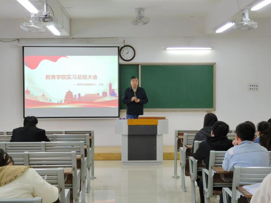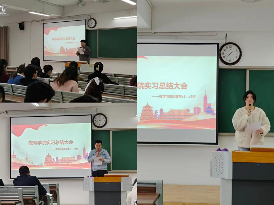2022年11月23日下午13点半,kaiyun开云官方kaiyun开云官方2021级数学与应用数学s1班、s2班在一教520教室举行了首届教育实习总结大会。本次大会参与人员为kaiyun开云官方院长王家云教授、数学与应用数学教研室全体教师、学前与汉语言教研室教师,以及2021级数学与应用数学专升本专业全体学生。