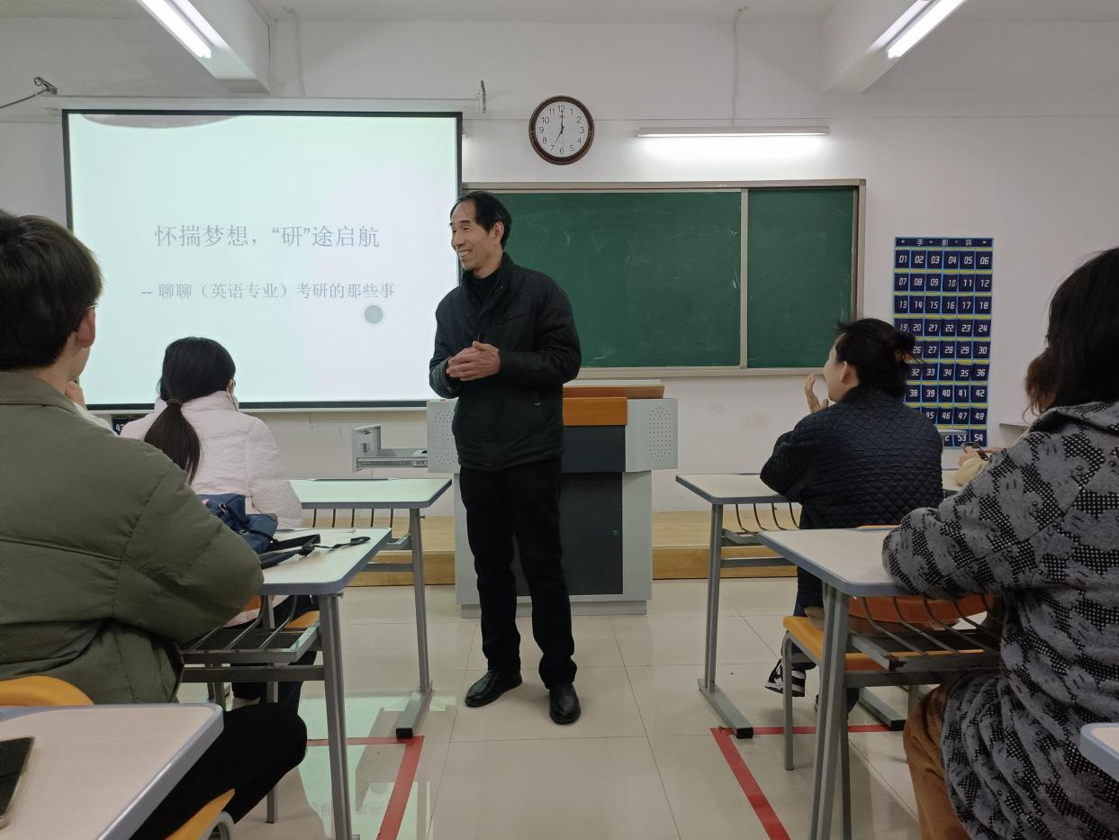 3月13日晚7点,kaiyun开云官方在二教322教室开展英语专业考研辅导专题讲座。本次讲座面向2021级、2022级普本、2023级专升本学生。讲座由kaiyun开云官方副院长谢贤德副教授主讲,全体英语教师列席。此次讲座旨在为我校英语专业考研学生提供英语考研的相关信息和备考策略,帮助他们更好地准备即将到来的考研挑战。