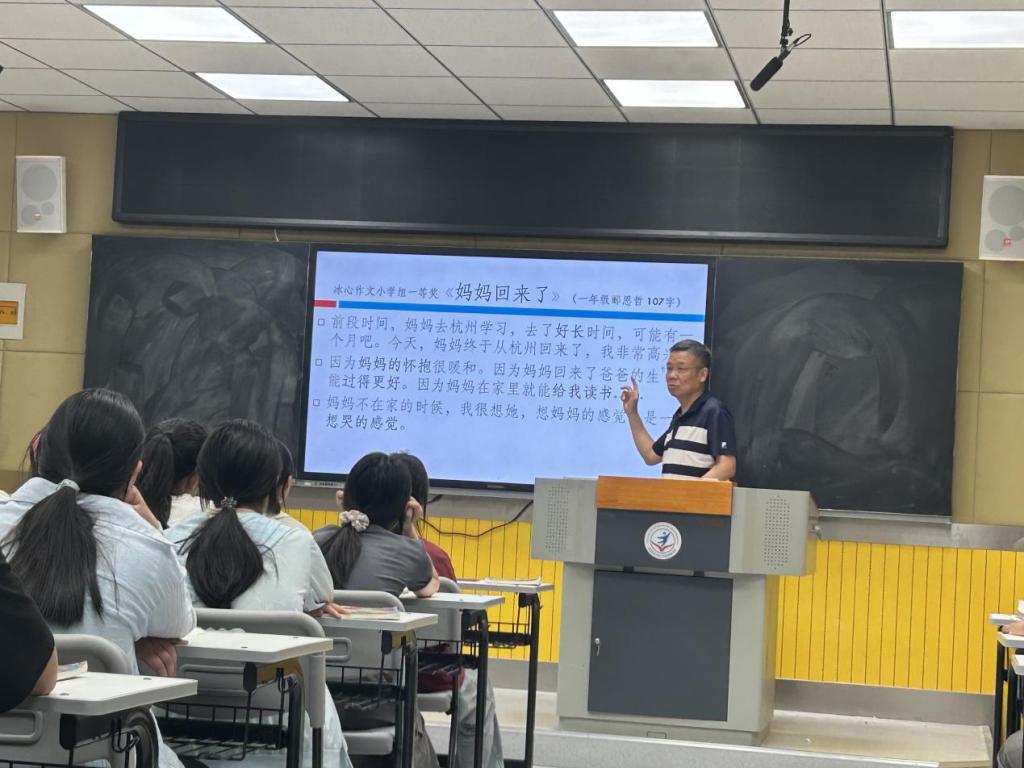 在公开课上,薛老师以其深厚的专业素养和亲切平易的语言,为初三学生们呈现了一堂生动有趣的作文课。薛老师举出了多种作文反面案例和修改后的范文作对比,让同学们直观地感受到写作技巧以及紧贴得分点的重要性,激发了学生们的写作热情和思考能力。同学们纷纷表示,通过这次公开课,他们更加深入地了解了中学语文教学的特点和要求,对未来的教育工作充满了期待和信心。