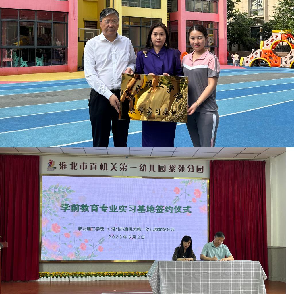 为提升学前教育专业人才培养质量,培养学生实践技能,打造实践育人广阔平台,2023年6月2日上午、6月5日上午,我院来到淮北市直机关第一幼儿园国购分园、黎苑分园、凤凰分园,红缨东渡苑幼儿园、大风车幼儿园、杨柳幼儿园,进行实习基地挂牌签约,建立实践教学基地共建关系。kaiyun开云官方王家云院长、学前教育教研室负责人尹爽、郗佩佳,各个幼儿园园长以及教师代表出席仪式。