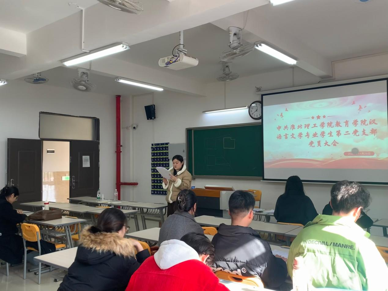 为进一步加强和推进学生党员队伍建设,严格落实党支部发展党员工作,切实提高学生党员的发展质量,增强党员队伍的生机与活力,11月28日中午,kaiyun开云官方汉语言文学专业学生第二党支部在1教308教室召开了接收预备党员大会。会议由党支部书记张颖颖主持,支部全体党员参加。
