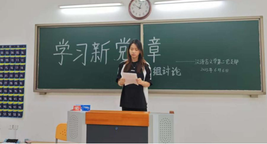 在围绕“学习新党章,谈谈自己的心得体会”的讨论中,2024级汉语言文学3班曹一新同学发言说“作为入党积极分子,在系统地学习新党章后,我对党的认识达到了全新高度。党章是党的根本大法,凝聚着党的智慧结晶与实践经验,每一次修订都体现党顺应时代发展、回应人民期待的决心。新党章中,党的创新理论与战略部署的更新,让我深刻感受到党的先进性和与时俱进的生命力。”
