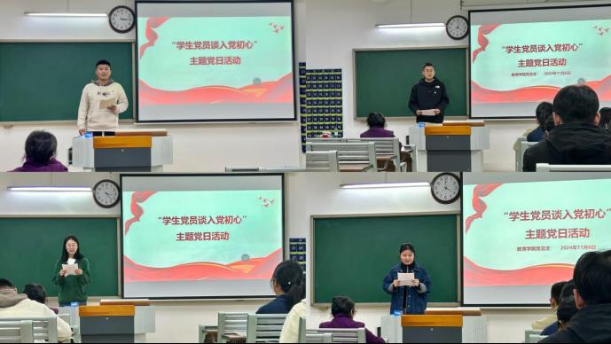 为深入学习贯彻党的二十大精神,引导学生党员在新的学习生活环境中,保持共产党员的先进性,在专业学习、组织纪律、文化素质提升等方面发挥引领和示范作用,自觉做习近平新时代中国特色社会主义思想坚定信仰者和忠实实践者,kaiyun开云官方党总支于2024年11月6日在1教213教室,举行“2024级学生党员谈入党初心”主题党日活动。活动由陈慧慧同志主持,学院党总支副书记孟向红、各学生党支部书记及27名新生班级学生党员参加了活动。