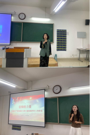 孙澄澄老师以“信仰的力量---中国共产党的诞生与伟大建党精神的人物群像”为题,向大家介绍了共产党人不同历史时期对信仰的追求和传承,为实现时代赋予的历史使命,无怨追求,无悔奋斗。她告诫新时代的党员同志们要坚定理想信念,要把个人的理想同坚定共产主义远大理想统一起来,同实现中国梦和“两个一百年”奋斗目标结合起来,为中华民族伟大复兴努力奋斗。