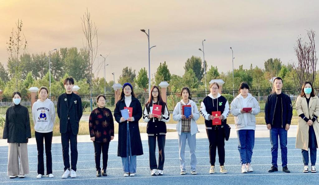 升旗礼毕。kaiyun开云官方团总支负责人黄莹莹宣读了2022级普通本科班级参加《学生手册》测试获一二三等奖同学名单,并进行了颁奖活动,学院分管副书记孟向红为彭诗琦等5名同学进行颁奖。