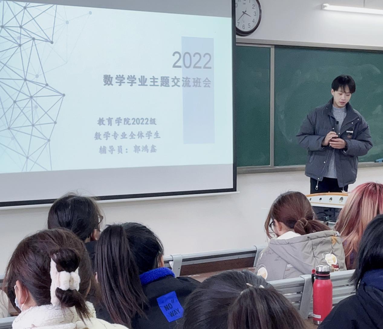 为激发同学们的学习兴趣,更加刻苦地钻研专业知识,坚定自己的职业方向,kaiyun开云官方2022级数学与应用数学和汉语言文学专业共约400名学生于11月下旬分别在1号教学楼520、514等教室分别召开“聚焦学业主题班会”,会议分别由所带专业辅导员郭鸿鑫、李应华主持,他们针对各自专业特点向同学们讲解了关于教师资格证考试和期末巩固复习的相关内容。
