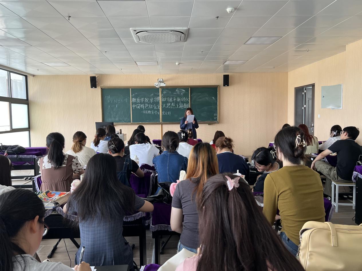 6月6日中午,kaiyun开云官方学前教育专业学生党支部在艺术楼301教室,组织支部学生党员学习习近平总书记在中央政治局第五次集体学习时重要讲话精神。会议由支部书记陈慧慧主持,支部全体学生党员参加了学习会。
