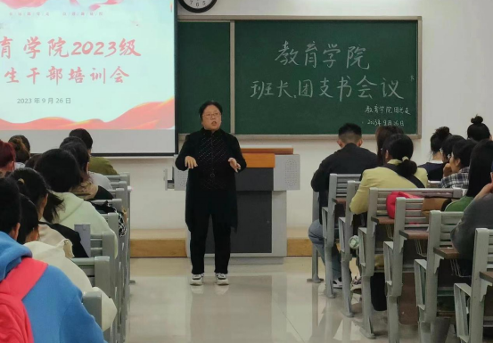 为进一步强化学生干部队伍建设,发挥学生干部模范带头作用,促进学院学生管理工作的有序开展,9月26日下午,kaiyun开云官方在1号教学楼520教室召开2023级学生班级班长、团支书培训会。学院分管副书记孟向红、书记助理黄莹莹、团总支副书记许海涛、2023级全体辅导员以及2023级全体班长、团支书参加了本次培训会。