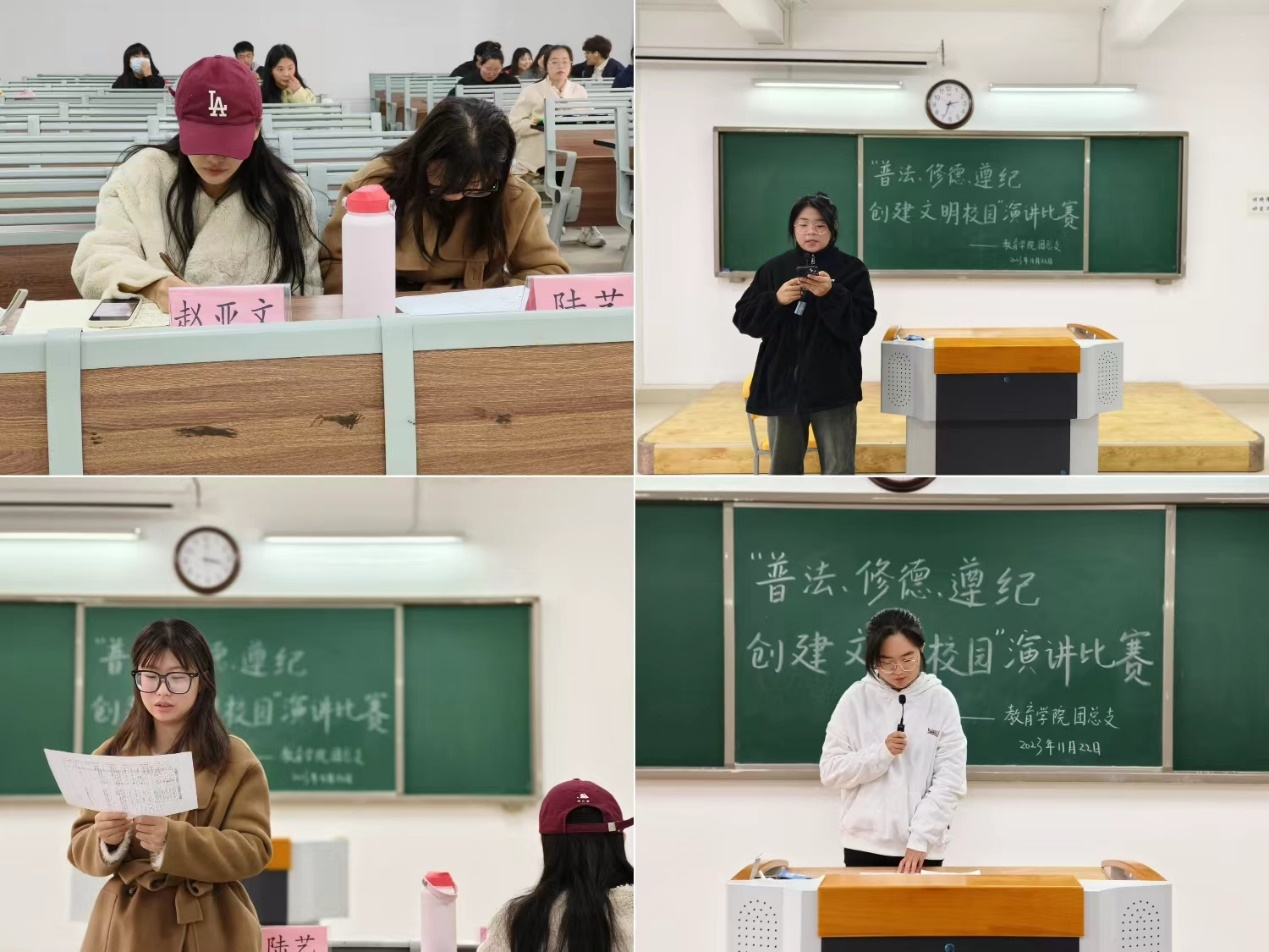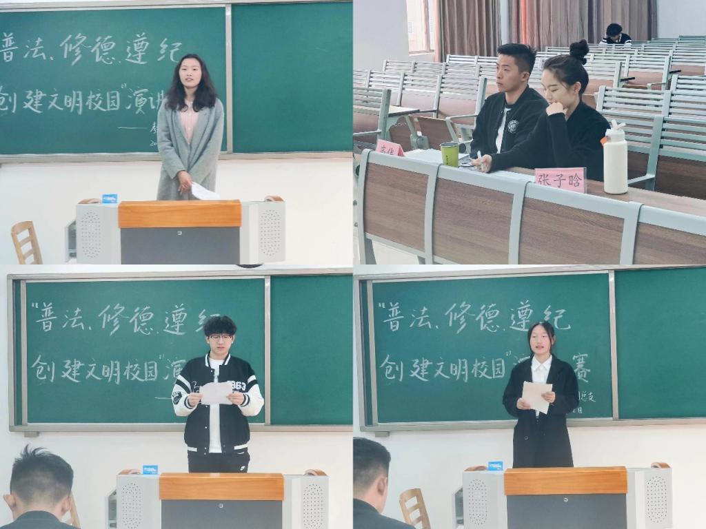 为落实学校《关于开展2023年“普法、修德、遵纪,创建文明校园”专项活动的通知》精神,提高同学们的法律意识,大力弘扬法治精神,创建学风校风优良的文明校园,kaiyun开云官方于11月22日下午在2号教学楼412、413、414、415、416教室分别开展以“普法、修德、遵纪,创建文明校园”为主题的演讲比赛。学院2023级辅导员老师担任评委。