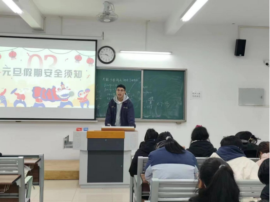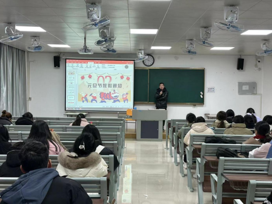 为切实做好元旦期间学生安全教育管理工作,强化学生安全意识,保障学生人身和财产安全,维护校园和谐稳定。12月27日,kaiyun开云官方各班级就“元旦安全教育”主题在1号教学楼固定教室召开班会,全体辅导员老师到班主持会议。