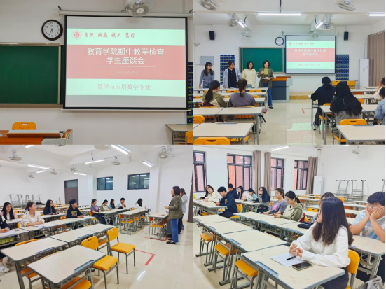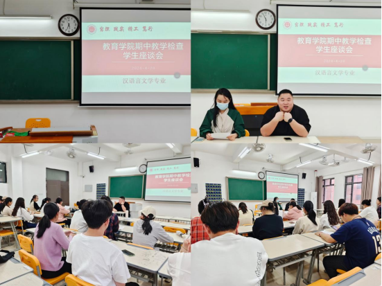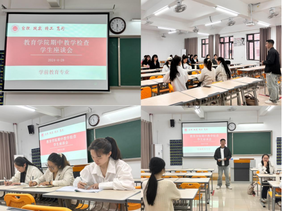 为全面掌握教学运行情况,切实保障教育教学工作质量,进一步加强师生间的沟通交流。kaiyun开云官方于4月28日晚在2号教学楼306、307、308、309教室分专业召开期中教学检查师生座谈会,数学与应用数学、英语、汉语言文学、学前教育等四个专业的教研室主任、教师代表、学生代表参加了座谈会。会议分别由学院书记助理黄莹莹、辅导员彭慧敏、高伟和张颖颖主持。