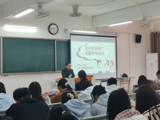 同时,由于社会上校园暴力问题频发,孟春江律师也从校园暴力现状分析、校园暴力的6种表现形式、校园暴力案例、如何杜绝校园暴力、校园暴力预防措施等方面向我院学子普及相关法律知识,通过以案释法、以案学法的方式,让学生们零距离与法律接触。深刻揭示了校园暴力造成的严重危害和影响,教育引导学生提高安全防范意识,学会自我保护,避免违法犯罪行为,坚决抵制校园欺凌。此次讲座内容精彩丰富,引起师生广泛共鸣。