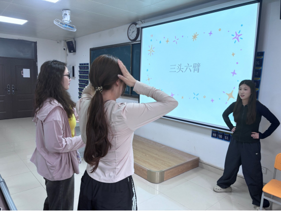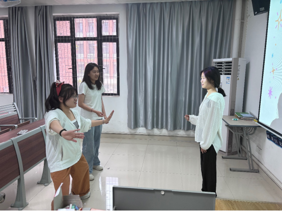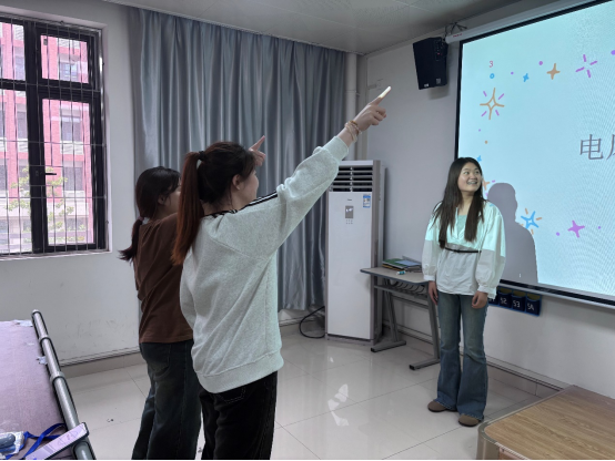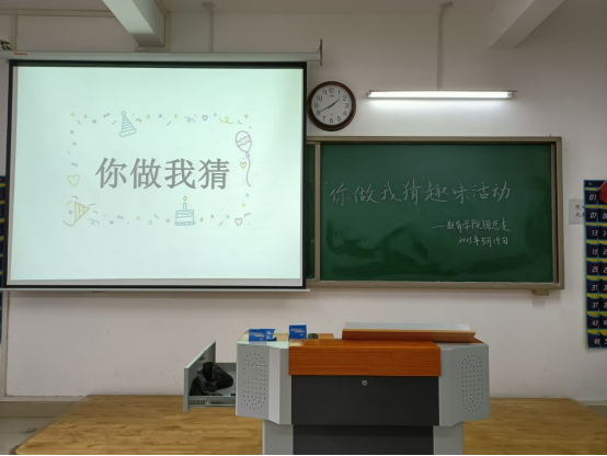 比赛现场气氛热烈,各教室参赛队伍早早到场进行赛前准备。随着主持人宣布比赛开始,选手们迅速进入状态。根据比赛规则,猜词者背对PPT,两名表演者面向PPT,以特定的展位准备迎接挑战。表演者在看到题目后,仅能说出题目类型,通过生动形象的肢体动作、丰富夸张的表情,将题目信息传递给猜词者。过程中,大家全神贯注,严格遵守“禁止语言暗示、场外提示”等规则,凭借默契配合展开激烈角逐。