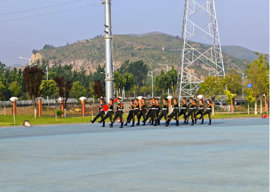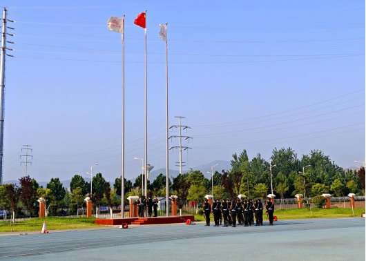 升旗仪式正式开始,随着激昂的出旗曲响起,国旗护卫队迈着整齐的步伐,护送鲜艳的五星红旗走向升旗台。全体师生庄严肃立,面向国旗行注目礼,高唱国歌,鲜艳的五星红旗在晨曦中冉冉升起,迎风飘扬。