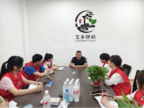 团队成员在草庙村孙伟书记的热情带领下,依次参观了艾草种植基地、工坊生产车间和电商直播间,孙书记介绍道:草庙村种植艾草历史悠久,为了探索出带动草庙村村民增收致富的路子,几年前在村委的支持下开始筹建艾草种植基地,依托艾草发展起“微工坊”,加工坊生产艾条、精油、艾草枕头、足浴包等10余种产品,为当地村民提供大量就业岗位,真正实现了村民经济增收。但草庙村发展绝不止于此,现在他希望能带动草庙村旅游业发展,实现现代化与乡村振兴完美结合,同时把草庙艾草推广销售至更远处。团队成员们认真倾听了孙书记的介绍,备受鼓舞,更深刻直观的感受到了草庙村乡村振兴建设给村民带来的幸福感,纷纷表示希望能通过本次乡村社会实践活动,发挥青年大学生群体的力量将草庙村的艾草产业和产品宣传推广。最后孙书记深情寄语:“投身乡村振兴之中,一切莫丢了情怀”,更是深深触动了每一位团队成员的心弦。他们深刻认识到,乡村振兴不仅是经济上的发展,更是情感与文化的传承。